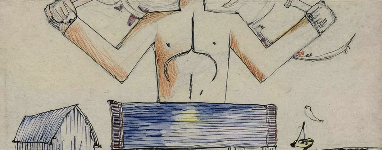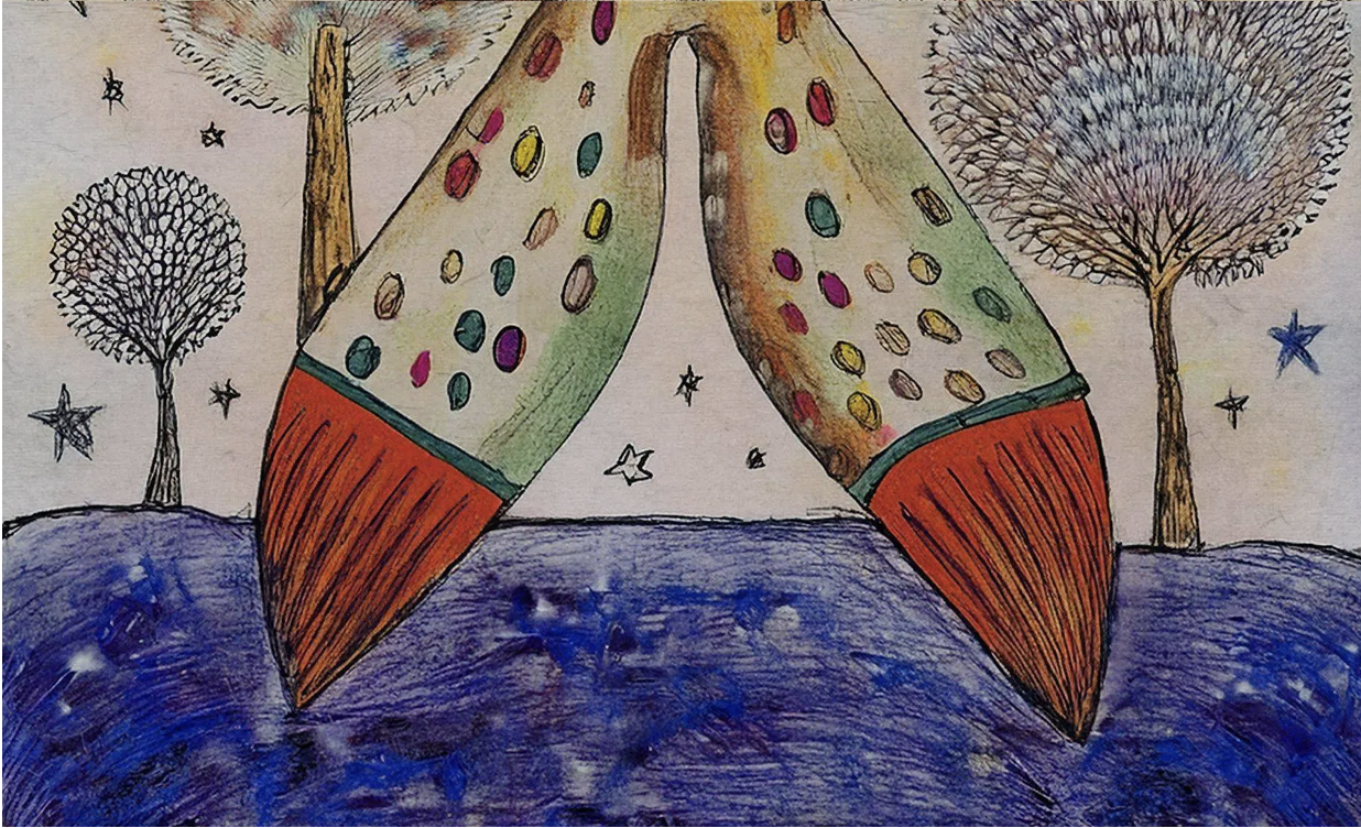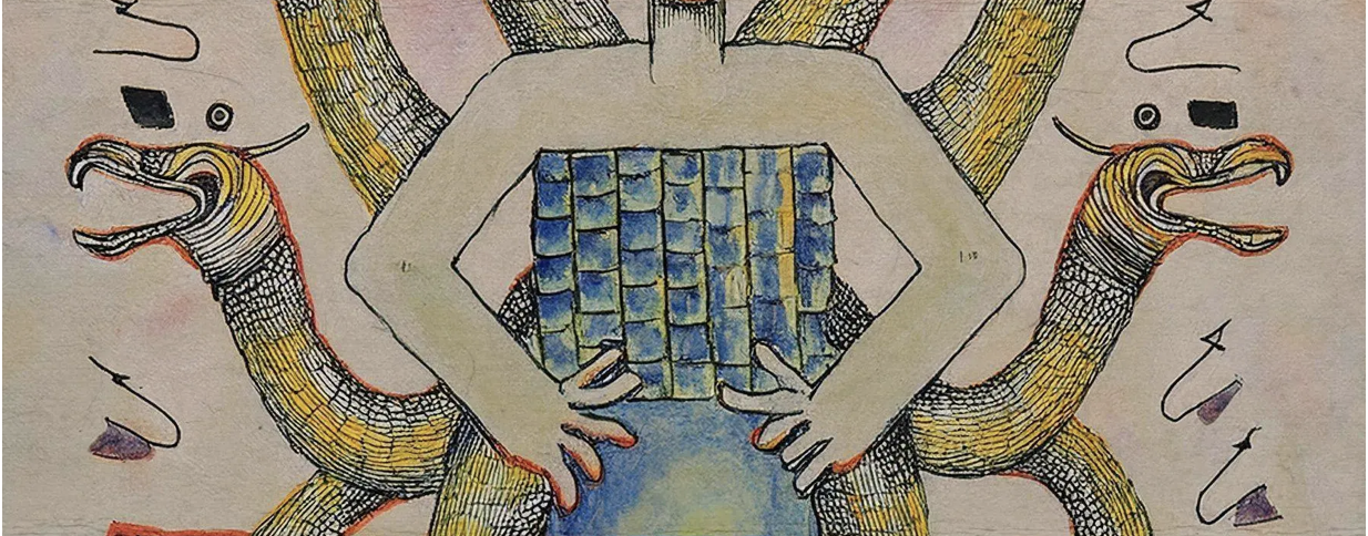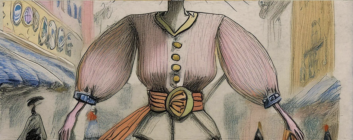 I originally thought it would be fun to illustrate my own characters for this project however I quickly realized that my time constraints were not going to allow for that so I went to the web to search for some images I could use. Pretty quickly into this search I came upon MoMA’s Surrealist Exquisite Corpse Gallery. In this experiment MoMA asked participants to describe one of three sections of a body. With help from AI, their descriptions were transformed into images and combined into single body creations.